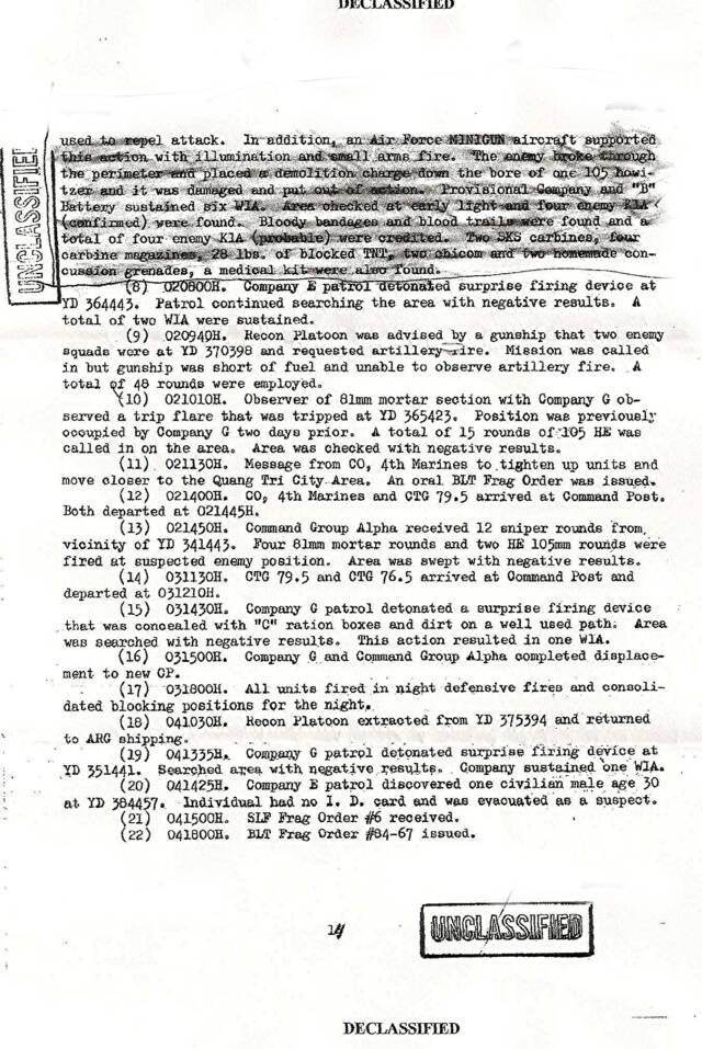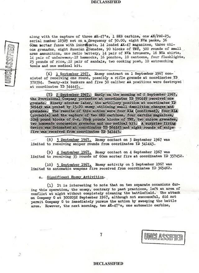 AFTER ACTION REPORT FOR WHEN BRAVO WAS OVER RAN ON SEPT. 2ND 1967. USE FOR ANY VA CLAIMS THAT YOU MAY HAVE.