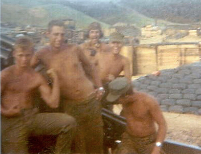 Rockpile Gun #1: From left Gros, Bob Burns, Don "Smitty" Smith, "The Mexican", Unknown sitting.