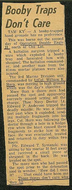 I found this booby trap while on a road sweep that was made every morning out of the base camp near Marble Mountain. It was next to a rice paddy dike.