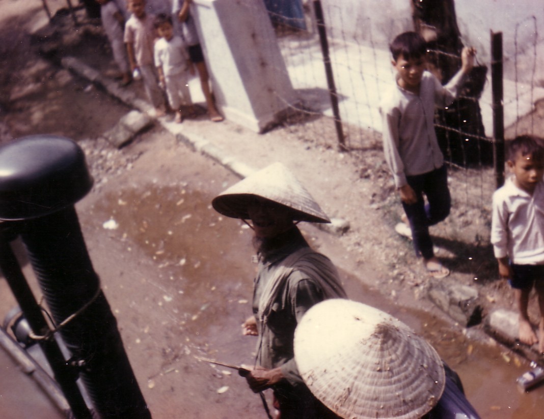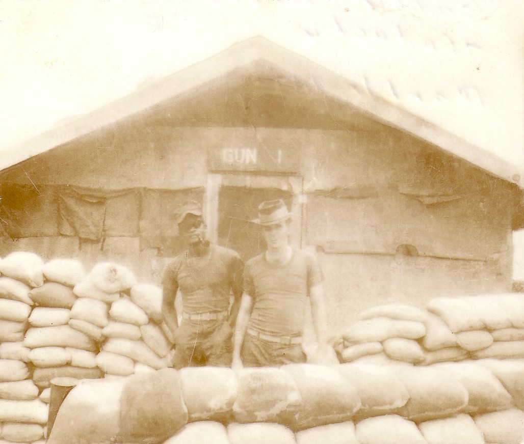 Donald Ray Allen on left loading Gun, he was killed in action on April 19th during convoy ambush on route #9 outside KheSanh. Dennis Hartley sites in gun, and Don Hinson is working the Gunners Quandrant and Lanyard.