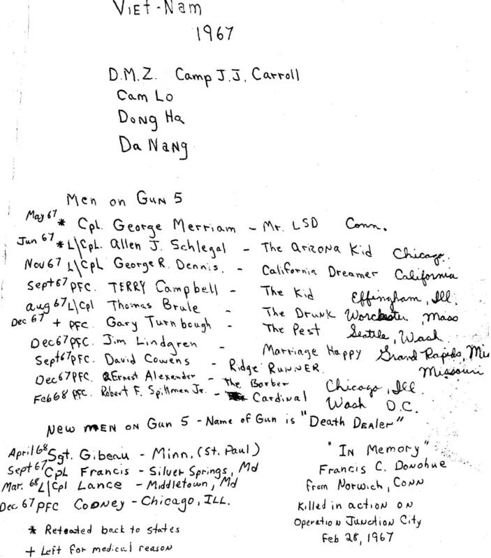 Frank had this page on the cover of his photo album. These were the men of Gun #5 (Death Dealer) when Frank arrived in country