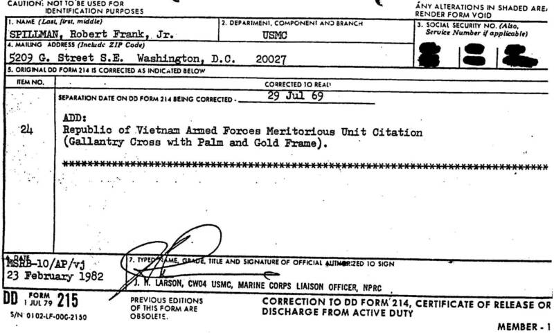 This is a correction page to DD-214. This shows that Frank and other Bravo Marines rate this award. It was probably awarded for our actions during the float (BLT).
