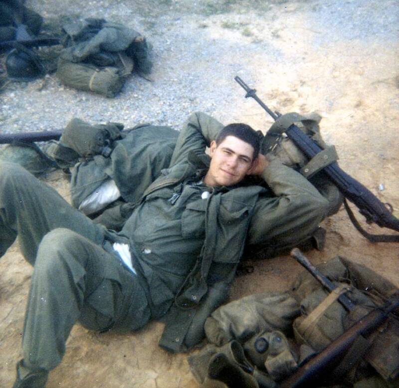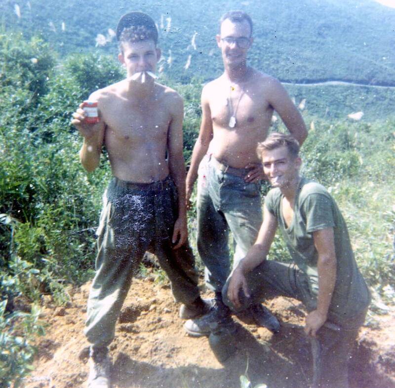 BUD KOVAL, EATING ICE CREAM ON HILL 881 AFTER THE MAY BATTLE.