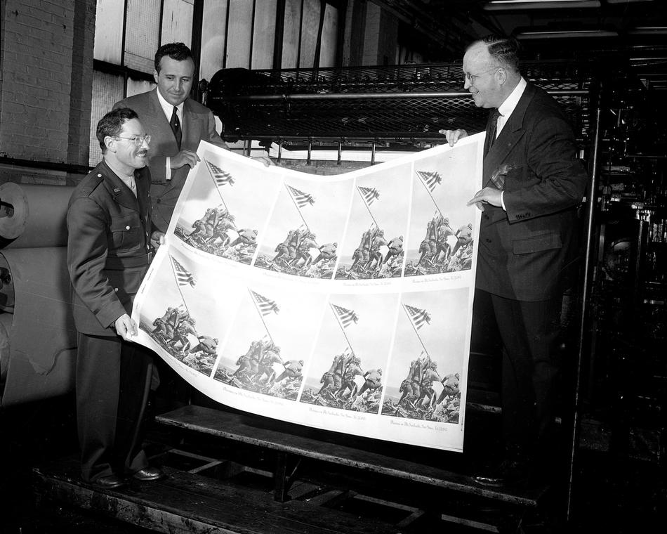 It has been called the greatest photograph of all time. It may well be the most widely reproduced. It served as the symbol for the Seventh War Loan Drive, for which it was plastered on 3.5 million posters. It was used on a postage stamp and on the cover of countless magazines and newspapers. It served as the model for the Marine Corps War Memorial in Arlington, Va., a symbol forever of the valor and sacrifices of the U.S. Marines.