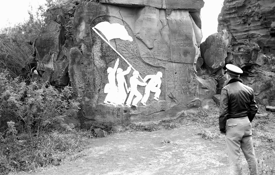 About halfway up, they met four Marines coming down. Among them was Sgt. Lou Lowery, a photographer for Leatherneck magazine, who said the flag had already been raised on the summit. He added that it was worth the climb anyway for the view. Rosenthal and the others decided to continue.