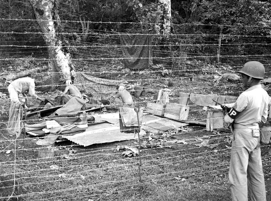 Japanese soldiers are seen imprisoned during U.S./Japanese warfare, Guam, Mariana Islands, Aug. 15, 1944. (AP Photo/Joe Rosenthal)