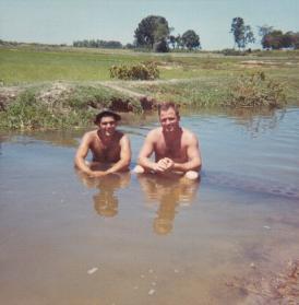 bath in rice patty.