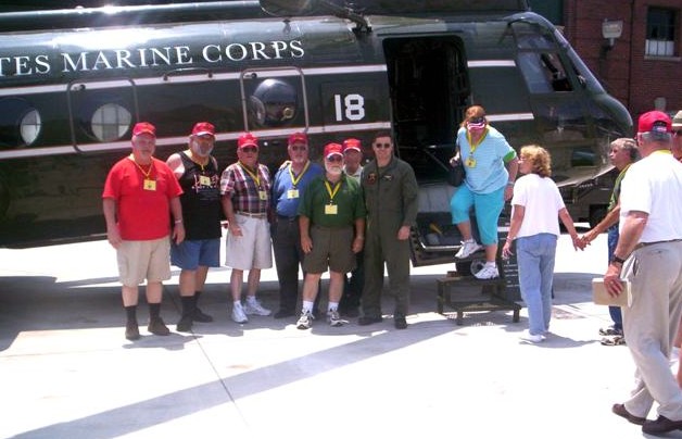 Bill Napier, Thomas Veigh, Mark Beaumier, John Duncan, Rod Skelton, Loyal Rongholt and Geri Beaumier from Echo Company leaping from the chopper
